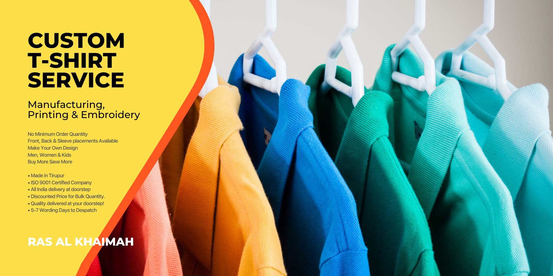 T-Shirt Manufacturers and Embroidery Ras Al Khaimah do not place any constraints regarding the minimum order to be placed. You can order just 1 (Single) T-shirt / Hoodie through our Digital / Screen printing & Embroidery service.